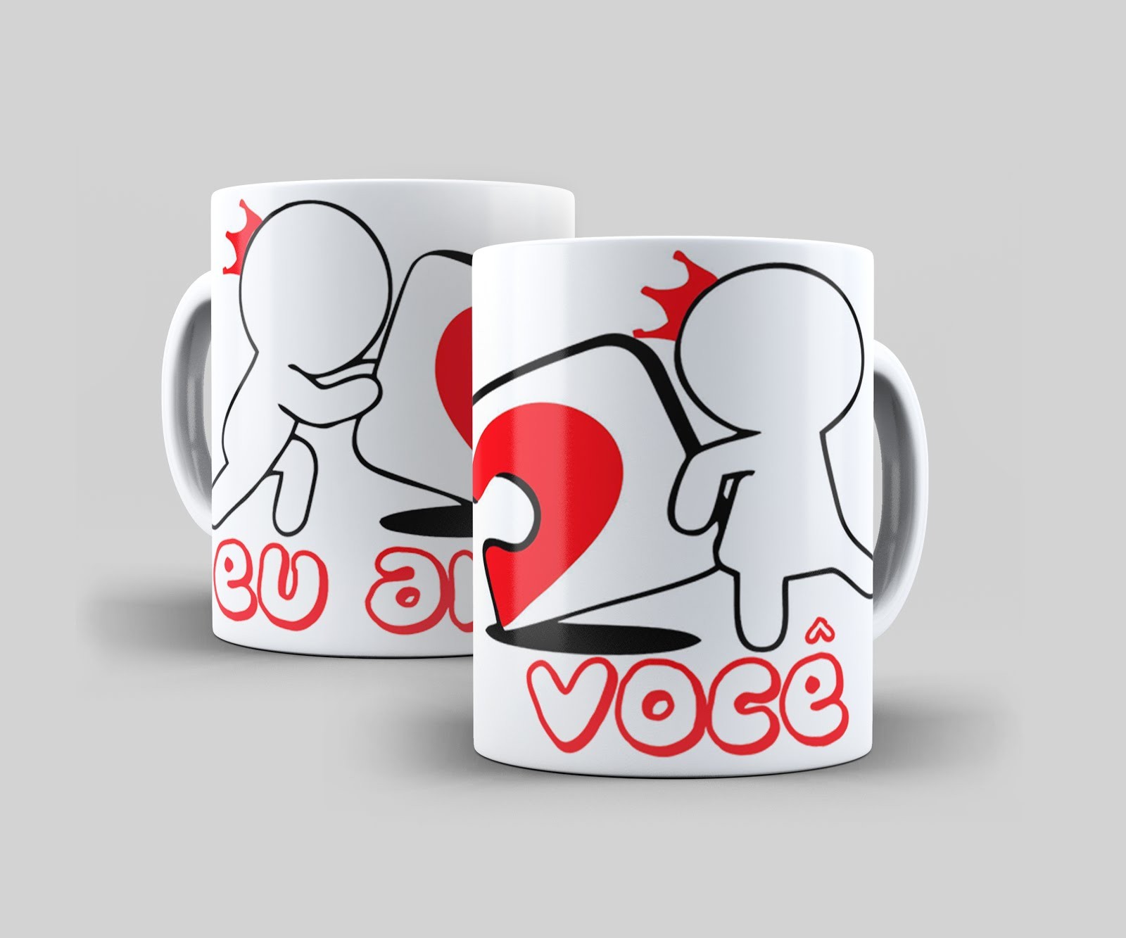 Estampa Caneca Casal "Eu amo Você", quebra-cabeça com coração.