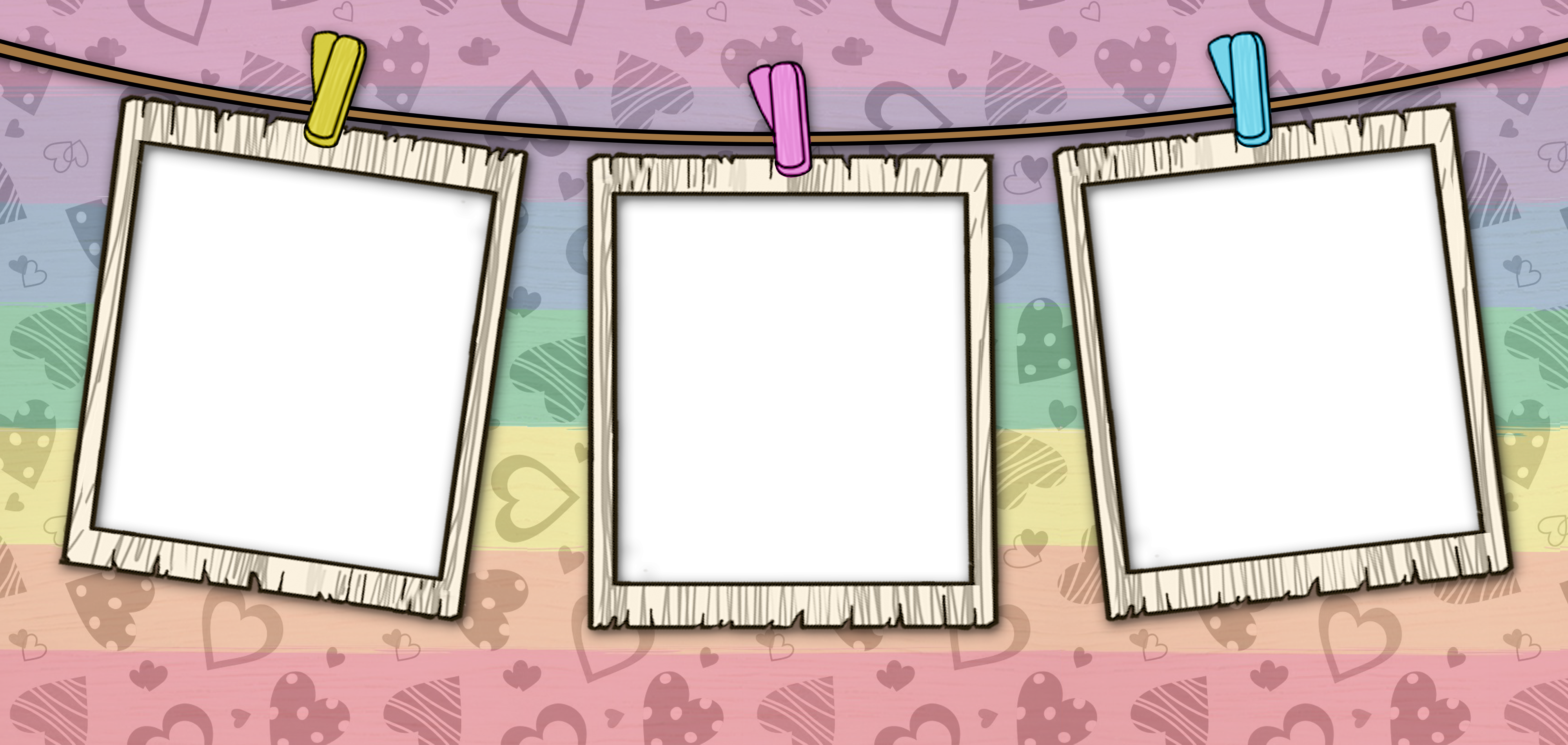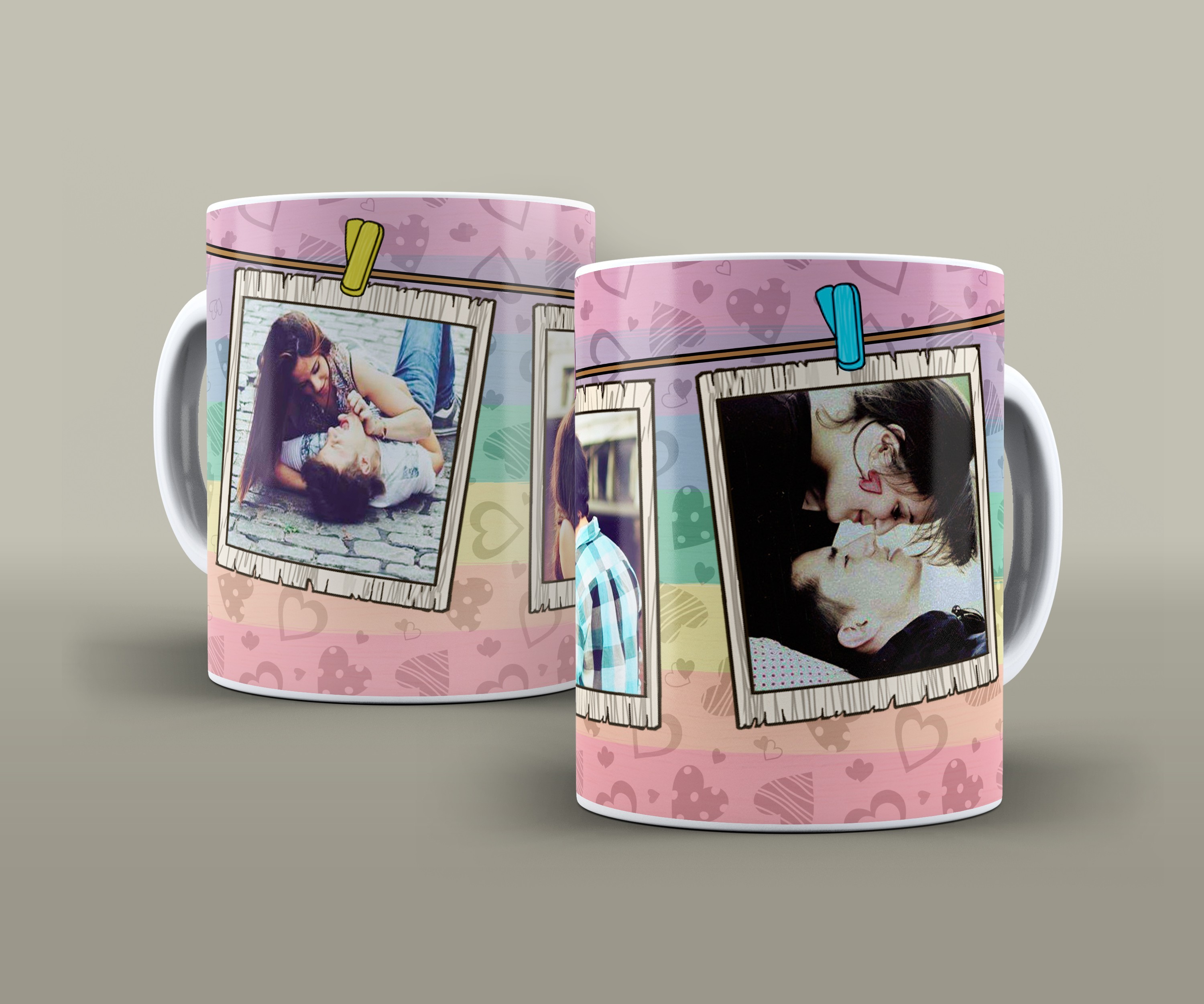 Estampa Dia dos Namorados com moldura de foto em Polaroid, fundo colorido com corações. Ideal para presentear quem você ama.