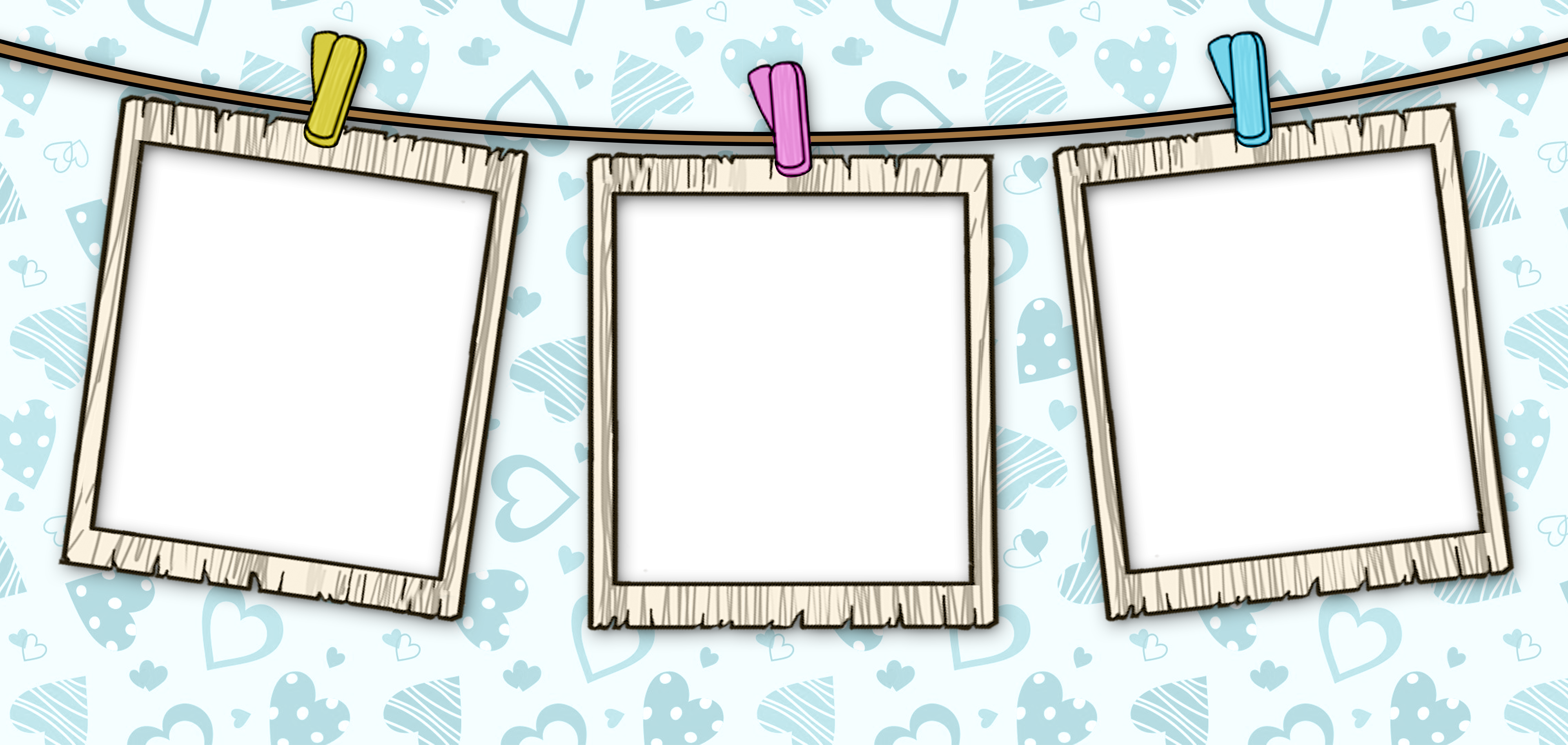Estampa Dia dos Namorados com moldura de foto em Polaroid, fundo azul com corações. Ideal para presentear quem você ama.