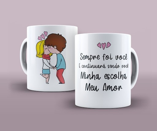 Estampa Dia dos Namorados Casal se beijando e frase "Sempre foi Você e continua sendo você minha escolha meu amor."