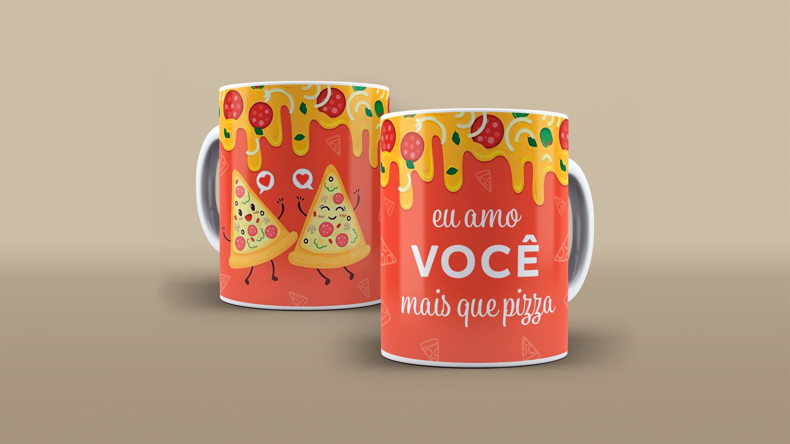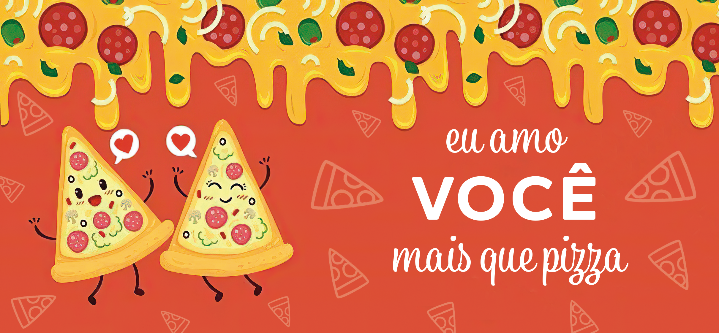 Estampa Eu Amo você mais que Pizza. Fundo laranja com efeito de Pizza.