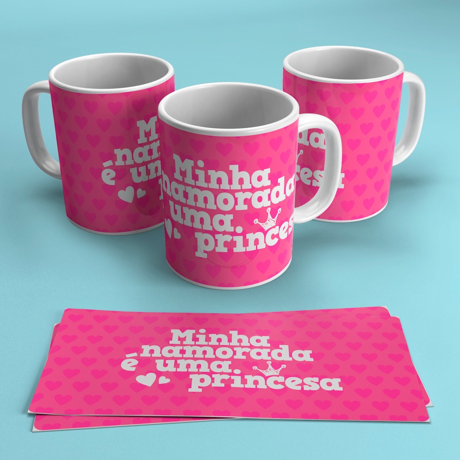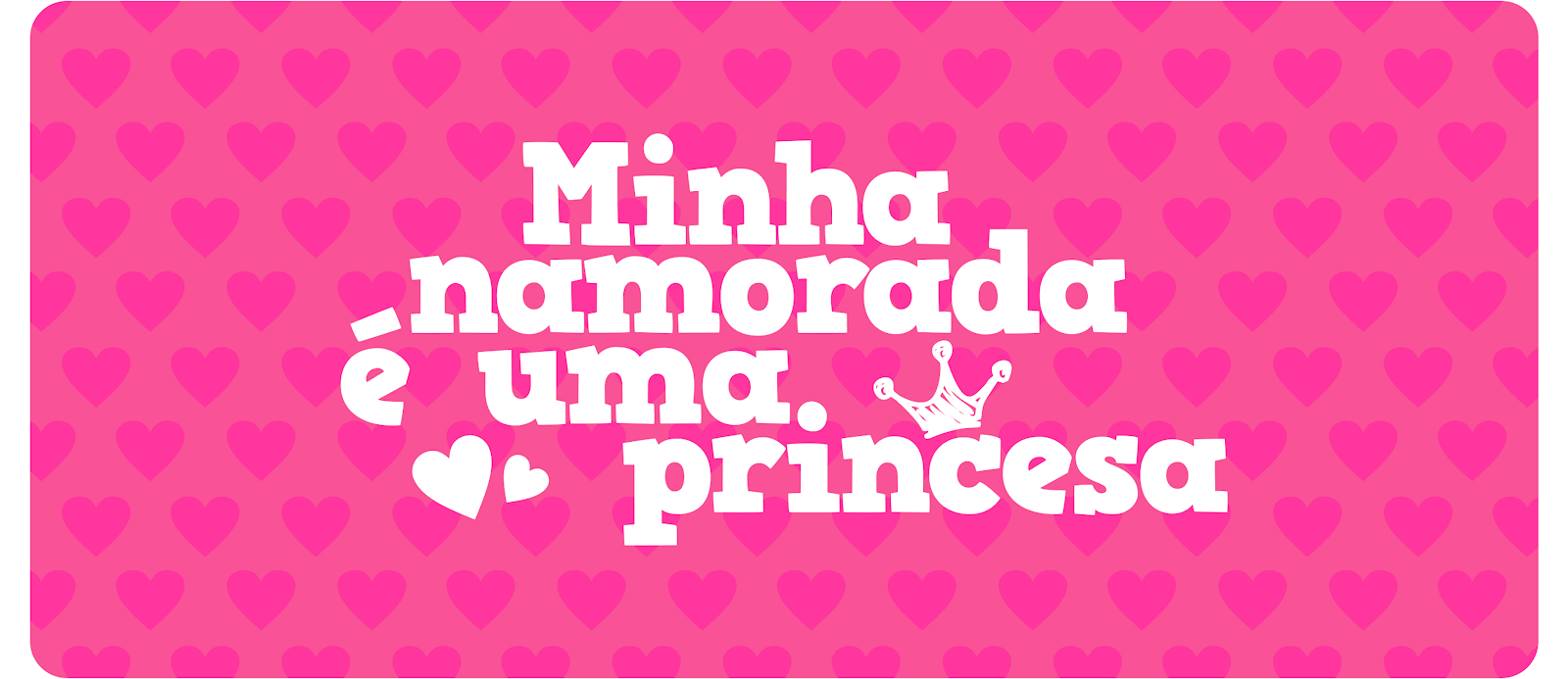 Estampa com frase Minha Namorada é uma Princesa e fundo rosa com corações.
